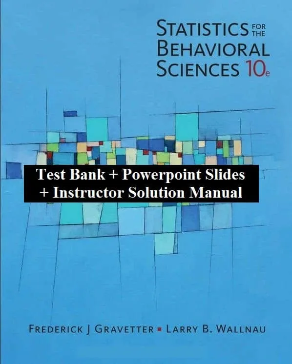 Statistics for the Behavioral Sciences 10e by Frederick J Gravetter, Larry B. Wallnau–This purchase does not consist of the eBook. This purchase consists of the Gravetter and Wallnau’s Statistics for the Behavioral Sciences 10th edition testbank, powerpoint slides and trainer solution handbook (ISM). As a compliment, we’ve likewise consisted of the Statistics for the Behavioral Sciences 9e test bank, ISM and powerpoint slides! Therefore this purchase consists of 6 files (for the cost of 1). They are as listed below Gravetter 10th edition