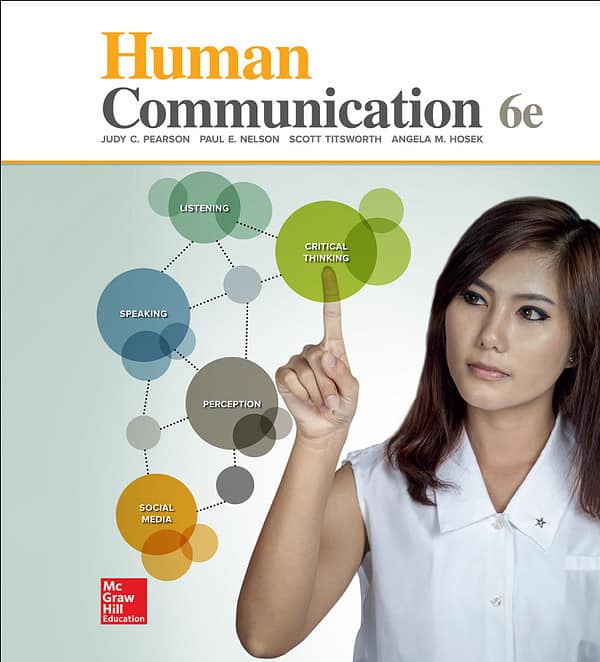 Improving your communication skills starts by understanding your attitudes and how to build relationships with others. The 6th Edition of Human Communication includes the latest research that will help you develop the skills necessary for effective and confident communication in any setting. Whether you’re a student or a professional, this integrated program shows you how to practice communication skills, build public speaking confidence, and succeed in your introductory communication course. With a focus on practical, everyday communication scenarios, this book is designed to make introductory communication studies relevant to students. The authors provide a balance of definitive theory and everyday application, which resonates with the challenges and goals of today’s students. The latest edition features updated research throughout the textbook, making it even more relevant and timely. Additionally, a new chapter feature called “Communicating Creatively” emphasizes how creativity can improve your communication skills and an “Be Ready…For What’s Next” feature provides guidance on how to continue developing your communication skills for other classes, the workplace, and life. This 6th edition also includes SmartBook, which is the first and only adaptive reading experience designed to highlight content based on what you know and don’t know. Plus, it provides help at the moment you need it most through targeted learning resources like videos, animations, and other interactive tools. SmartBook will optimize your study time and create a personalized learning path for improved course performance. Please note: This sale is for the Human Communication 6th Edition eBook in PDF. Access codes are not included. Get your copy today and start improving your communication skills. 978-0078036958, 978-1259833526, 978-1260626612, 978-1259255410, 9781259255410 ,1259255417.